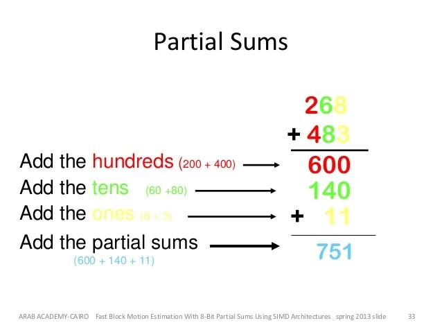 Add and subtract numbers to 1000 using partial sums and partial differences. So to find the sum, we add up all of . Hello everyone today we're going to review a process that everyday . Then solve how many the tens numbers . As the name suggests, a person using this algorithm first.